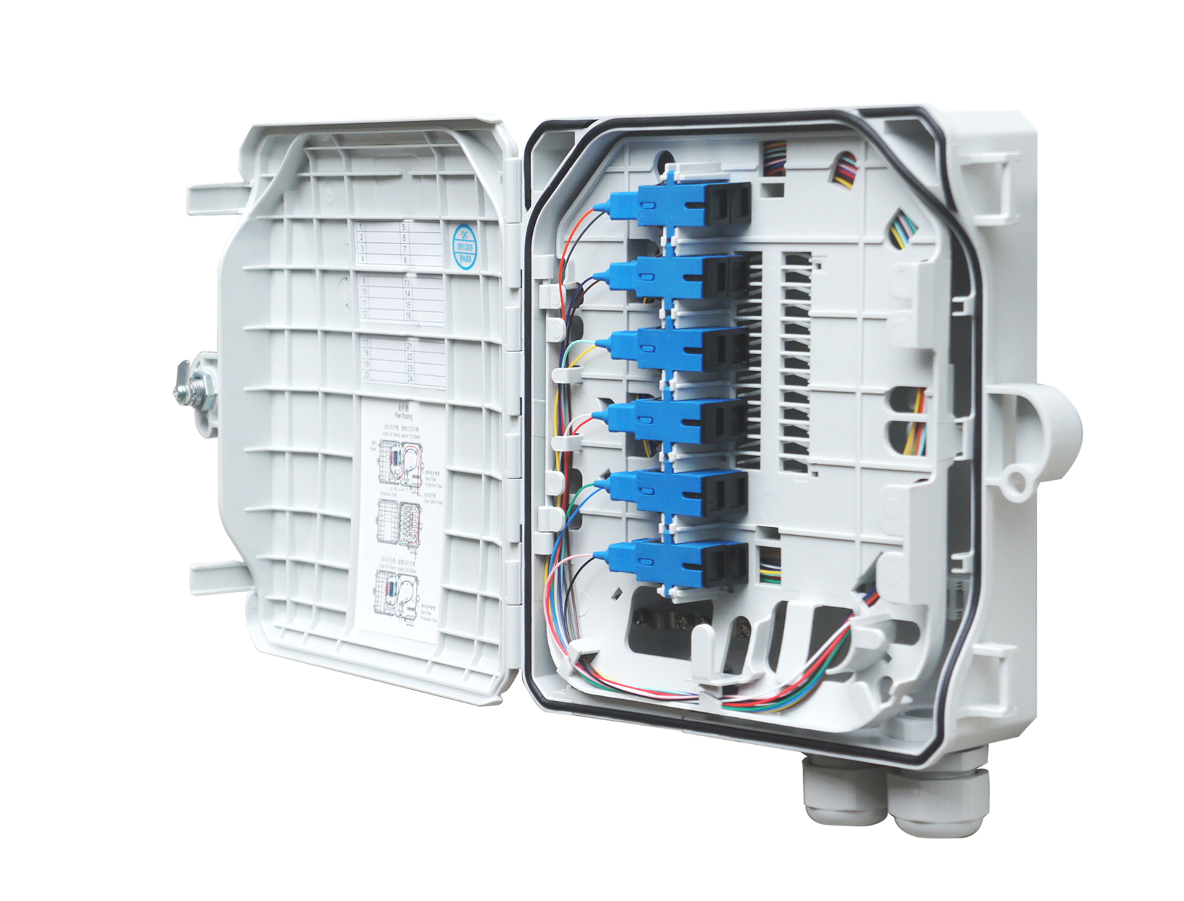 Optical terminal box is used to complete the lead-in, fixing and stripping protection of optical cable, optical fiber splicing and protection, storage of pigtails and other functions. It is used to connect outside plant optical fiber to terminal equipment, and connect fiber optic cable to optical cable, it is widely used in optical fiber communication network. This series of products are support wall mounted, easy maintenance.